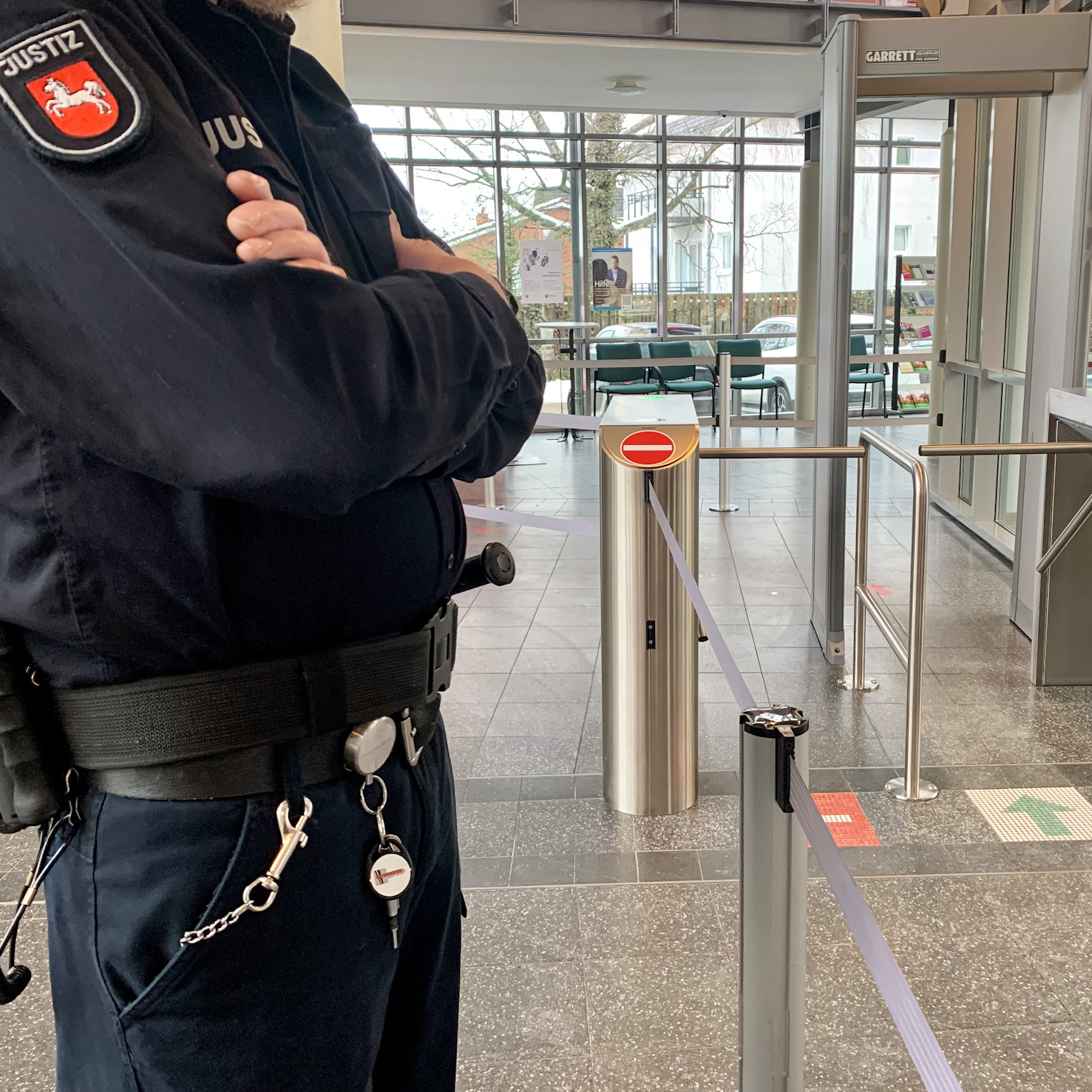 Im Eingangsbereich des Amtsgerichts werden regelmäßig Einlasskontrollen durchgeführt. Dies geschieht zur Erhöhung der allgemeinen Sicherheit im Gerichtsgebäude und dient somit auch Ihrer eigenen Sicherheit.