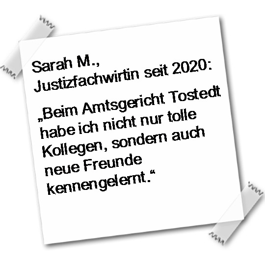 Das Amtsgericht Tostedt ist seit vielen Jahren eines der zahlreichen Ausbildungsgerichte im Bezirk des Oberlandesgerichts Celle. In dieser Zeit hat bereits eine Vielzahl ehemaliger Anwärter die Ausbildung erfolgreich mit der Prüfung zur Justizfachwirtin bzw. zum Justizfachwirt absolviert und ist seitdem als Beamtin bzw. Beamter im ehemaligen mittleren Dienst der Justiz tätig.